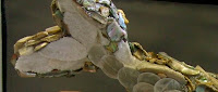 The tail, while aready in form, has now taken shape. Abalone shards like beautiful deep opals whisper the siren's song.....